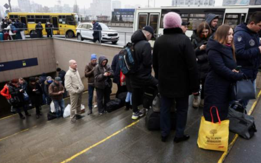 Trafiku u bllokua në kryeqytetin e Ukrainës, Kiev enjten, herët në mëngjes pasi banorët u përpoqën të largoheshin nga qyteti pasi forcat ruse nisën sulmin e saj ushtarak në Ukrainë.
