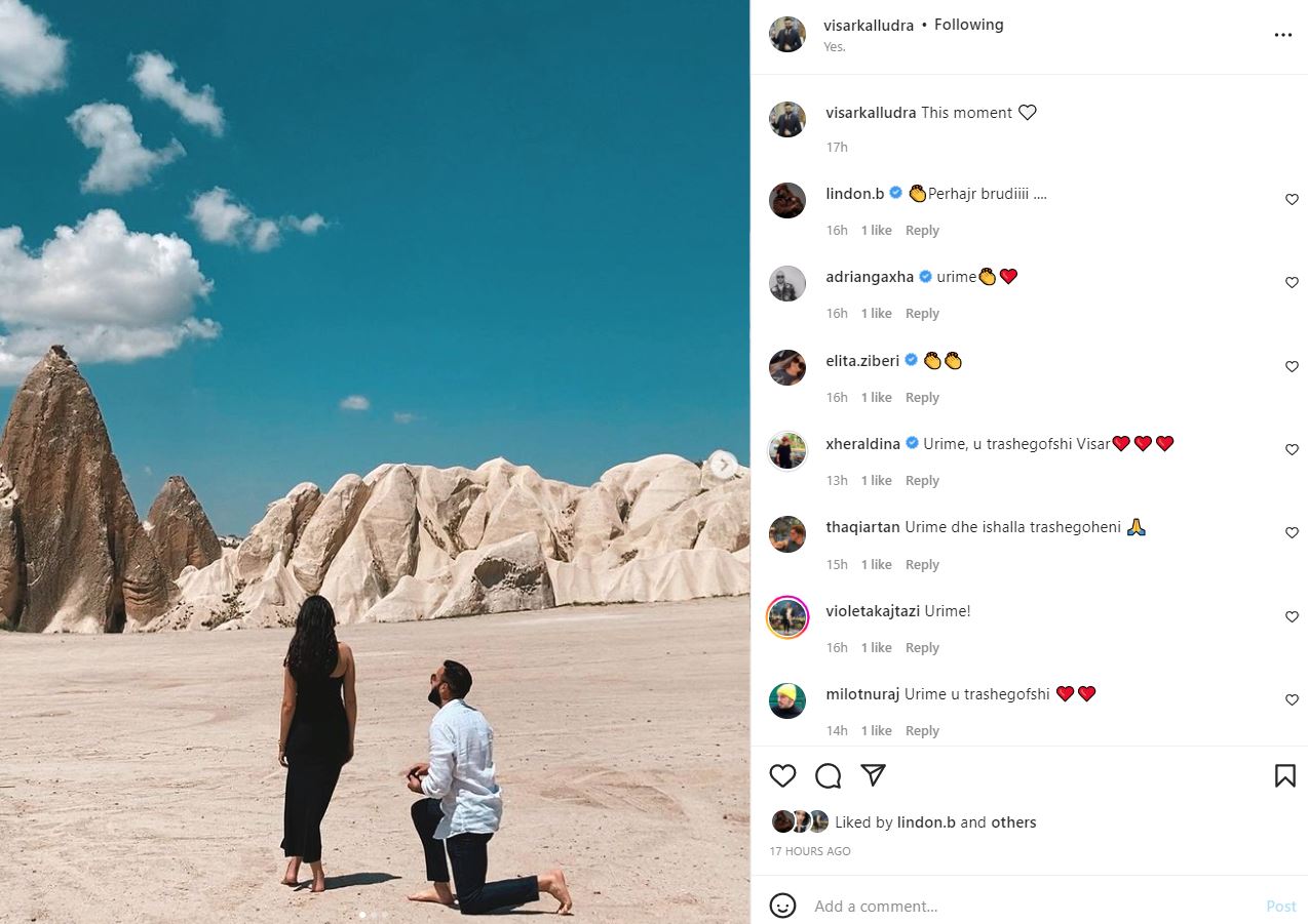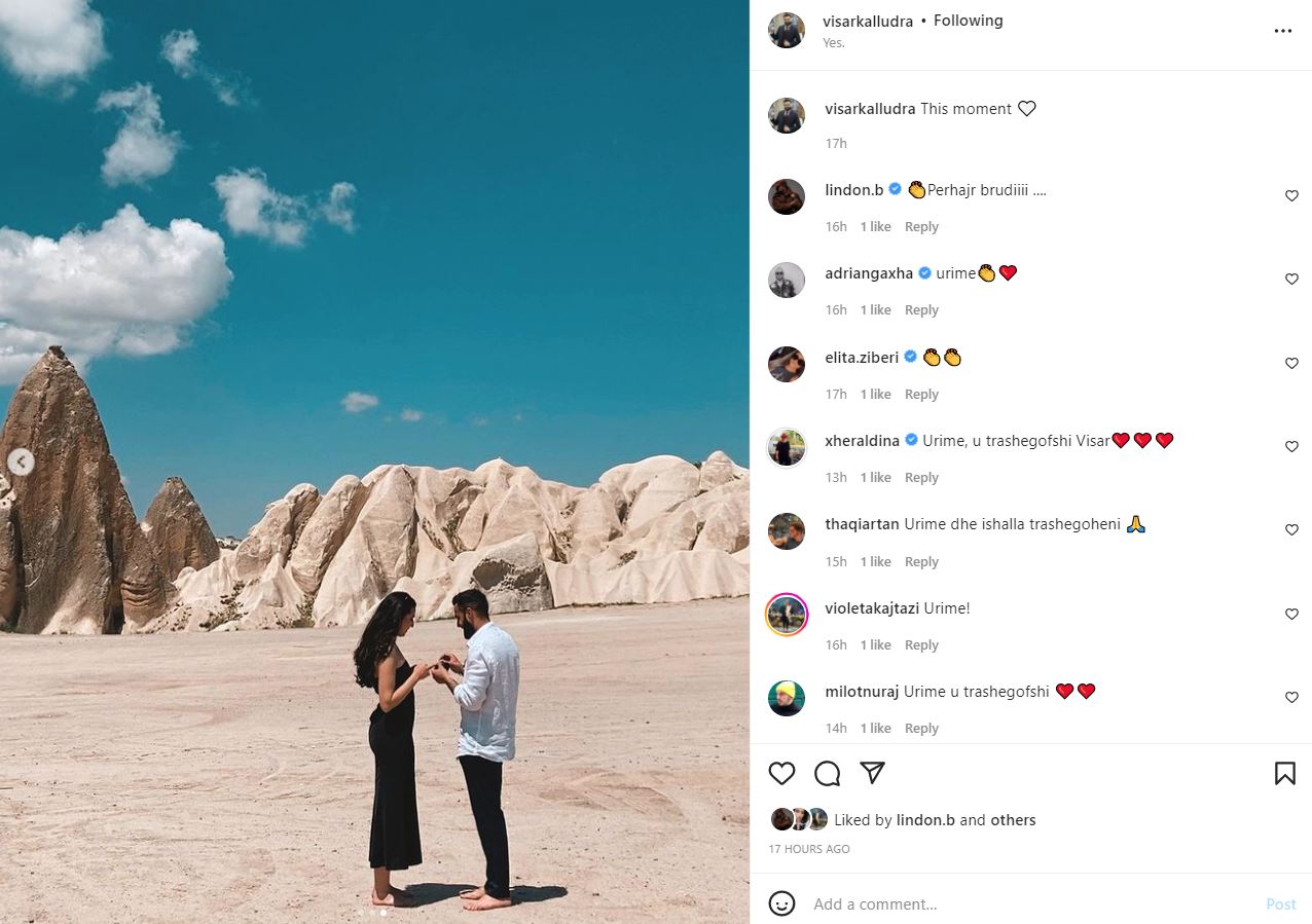 “This moment”, shkroi Kalludra krahas fotografive të bukura, me ç’rast bashkangjiti dhe një zemër. Në fotografitë e publikuara për mbi 60 mijë ndjekësit e tij në Instagram, moderatori mori urime të shumta.