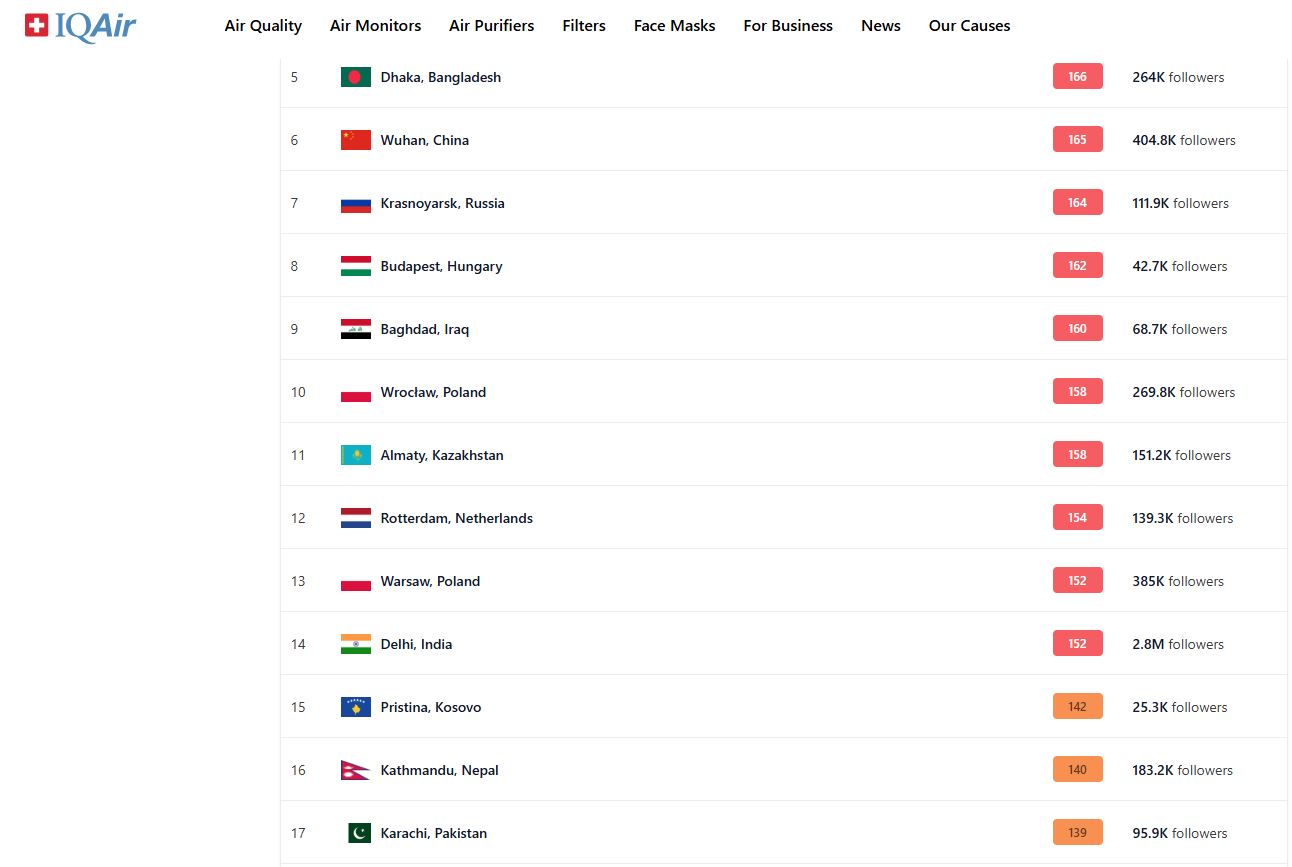Kryeqyteti ynë, gjatë ditës së enjte po radhitet i 15-ti në botë sa i përket ndotjes së ajrit. Kjo sipas matjeve të “IQ Air”.